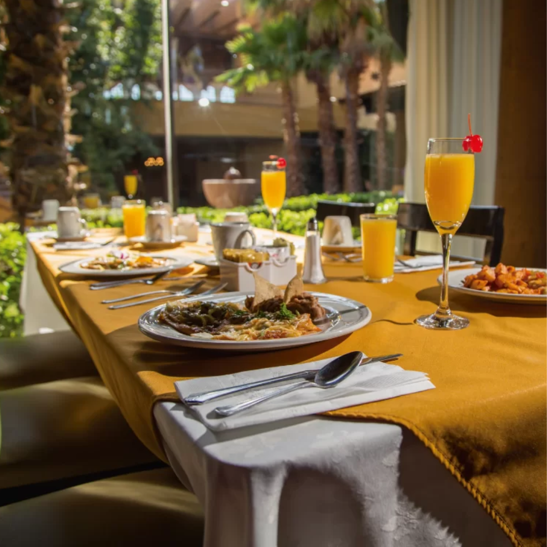 → Menú buffet con guisados típicos, huevos al gusto, pan dulce artesanal y estación de plancha.